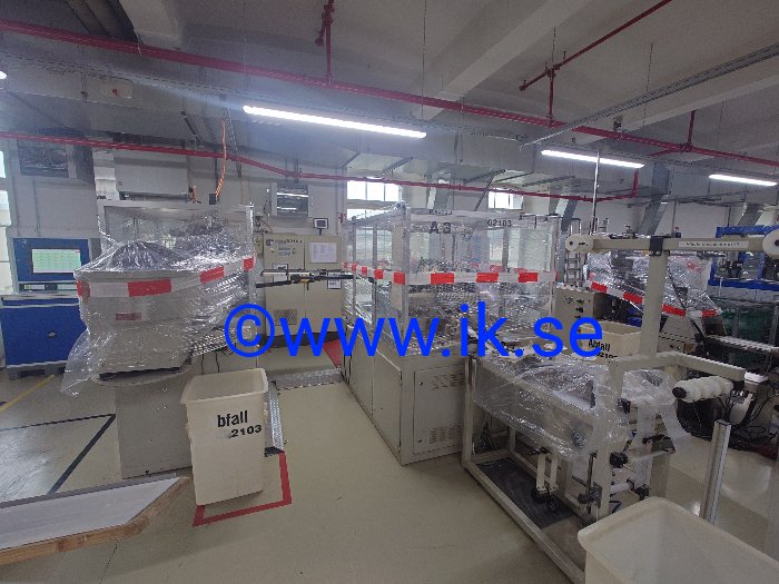 Complete tampon production line for tea-bag type tampons with cardboard applicator, speed: 100 ppm, size normal (6-9 g). Ruggli TC6 model. Complete with Trützschler DK715 card with FBK 533 chutefeed. Protec web-formation and transport.